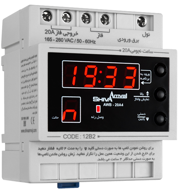 • دارای سیستم میکروپروسسوری برای کنترل سیستم روشنایی هنگام طلوع و غروب آفتاب براساس طول و عرض جغرافیایی ، • حفاظت در برابر افزایش و کاهش ولتاژ ، • قابلیت تنظیم ساعت خاموش کردن سیستم روشنایی به صورت تعریف ساعت دقیق و یا تنظیم تایمر بین ۱ تا ۱۲ساعت بعد از غروب آفتاب ، • حفظ تاریخ، ساعت و کلیه تنظیم ها پس از قطع برق ورودی (۵ سال) ، • نمایش چرخشی: تاریخ، ساعت، زمان وصل و قطع ، • تغییر زمان روشن و خاموش شدن لامپ ها تا ۱۲۰± دقیقه نسبت به طلوع و غروب خورشید ، • دارای باتری لیتیم با عمر ۵ سال (قابل تعویض) ، • قابلیت ، • نمایش ولتاژ شبکه ، • تغییر یا عدم تغییر ساعت تابستانه و زمستانه ، • انتخاب حالت دستی ، • انتخاب ۳۱ کد از پیش تعیین شده برای شهرهای مختلف به منظور سهولت تنظیم دستگاه ، • خطاها ، • Batt: خالی شدن باطری ، • Over: افزایش ولتاز ، • Under: کاهش ولتاژ