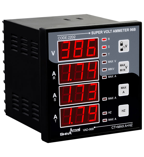 سوپر ولت آمپرمتر ۹۶B شیوا امواج ۱۰ دستگاه در یک دستگاه(سوپر ولت آمپرمتر 96B) شامل:۳ دستگاه آمپرمتر،۳ دستگاه ماکزیمتر جریان،۱ دستگاه ولت متر(اندازه گیری ۶ پارامتر ولتاژ R-S-T-RS-RT-ST)،۱ دستگاه ماکزیمتر ولتاژ،۱ دستگاه مینیمتر ولتاژ و ۱ دستگاه فرکانس متر